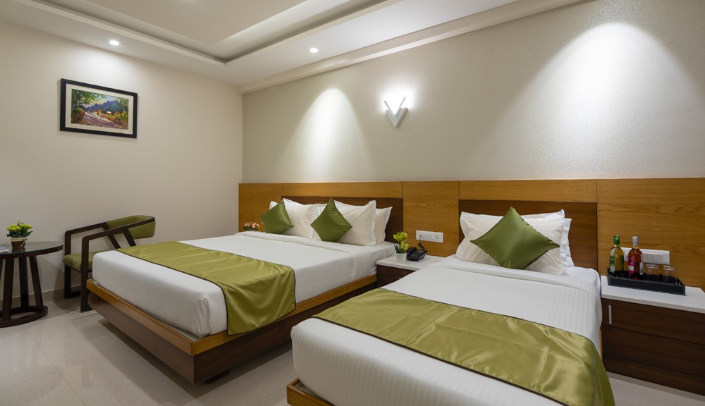 Our elegantly designed Junior Suites, spread over an expanse of 320 sft, comes with a King bed and a single bed. The ideal retreat for some extra comfort, this room has been especially designed to ensure seamless stay for our guests and accommodate up to 4 adults.